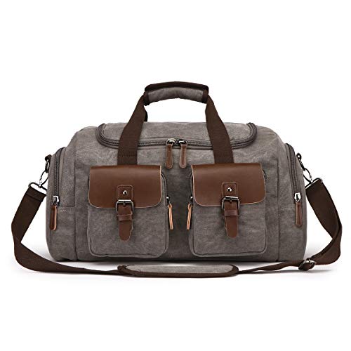 TELOSPORTS Canvas Duffel Bag, Vintage Canvas Weekender Bag Travel Bag Sports Duffel with Shoulder Strap (Grey)
